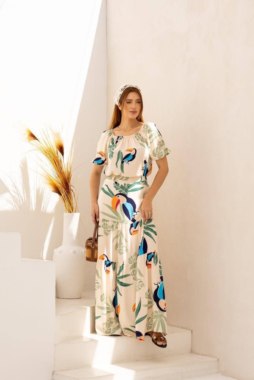 BLUSA LORRAINE - VISCOLINHO - ESTAMPA TROPICAL