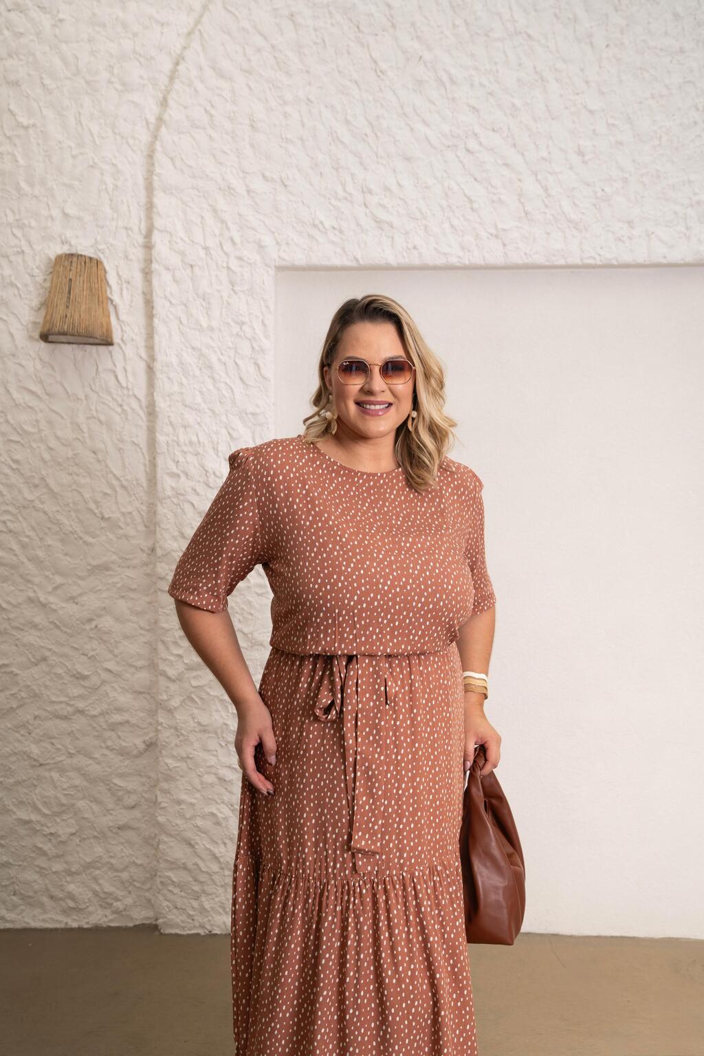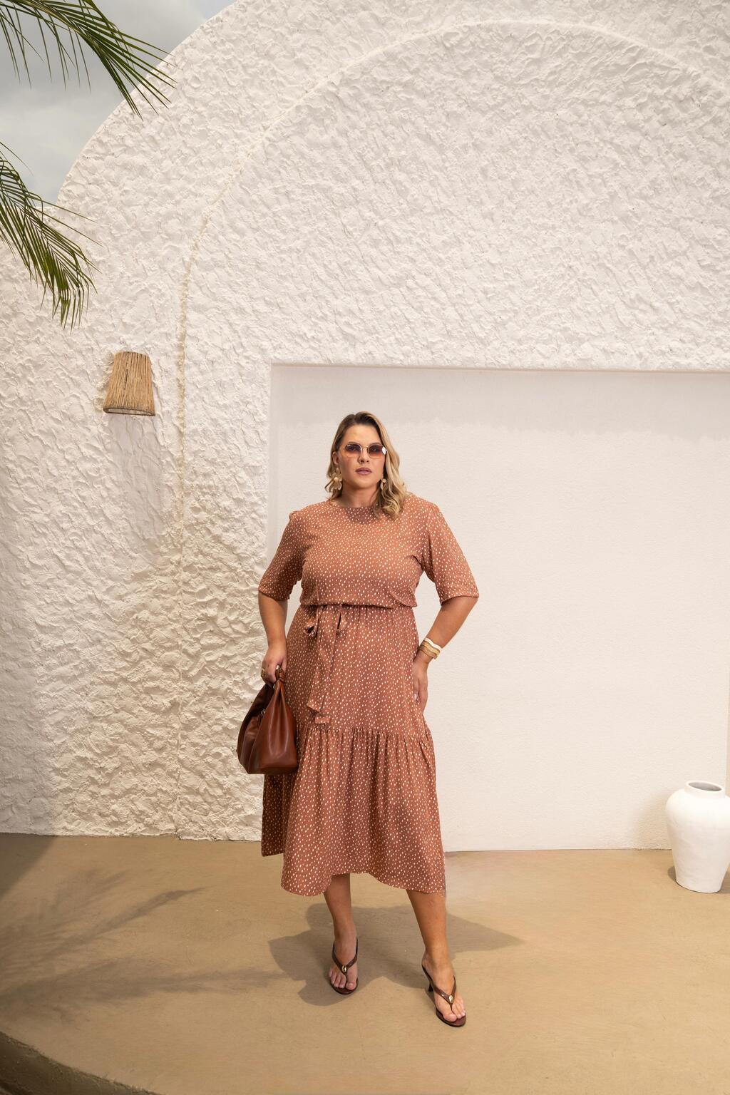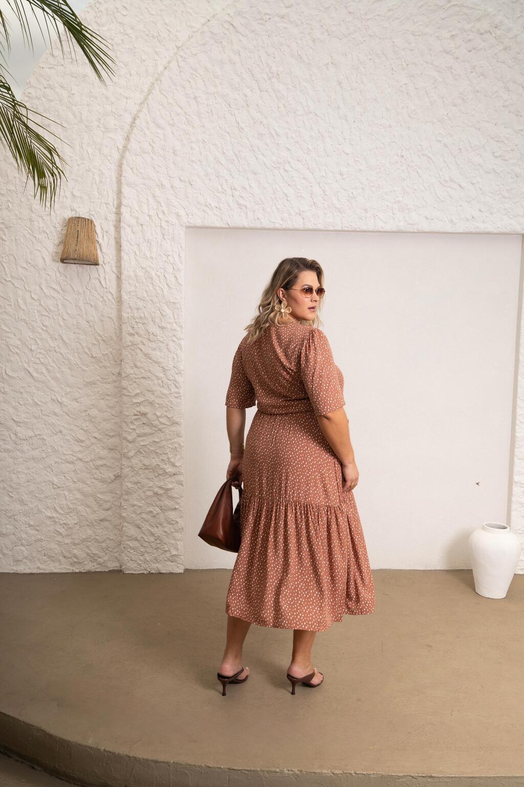 PLUS - VESTIDO ANGÉLICA - VISCOLINHO - POÁ MARROM