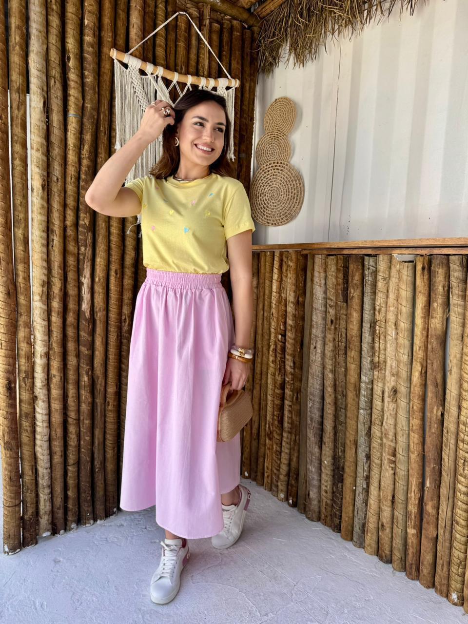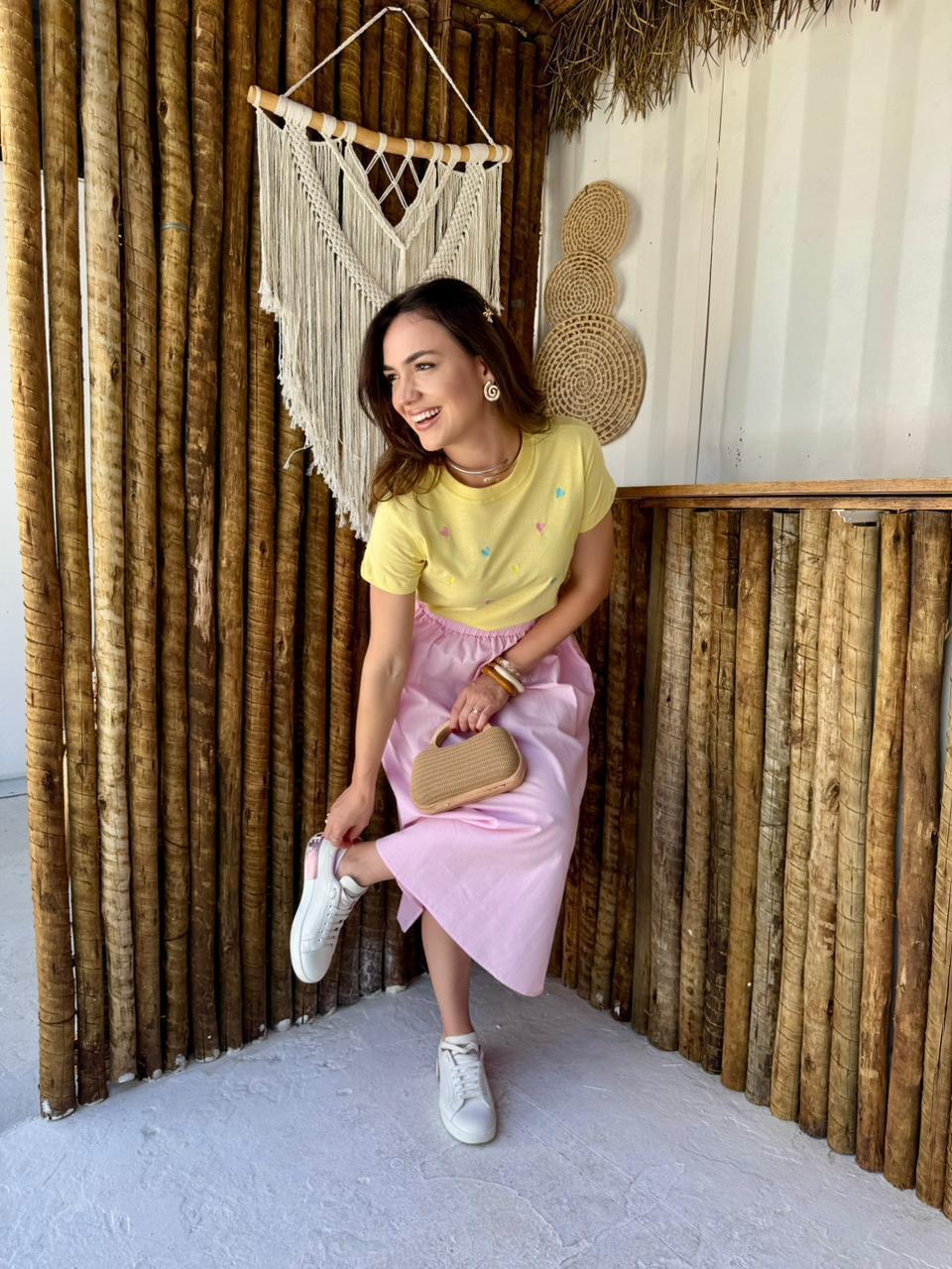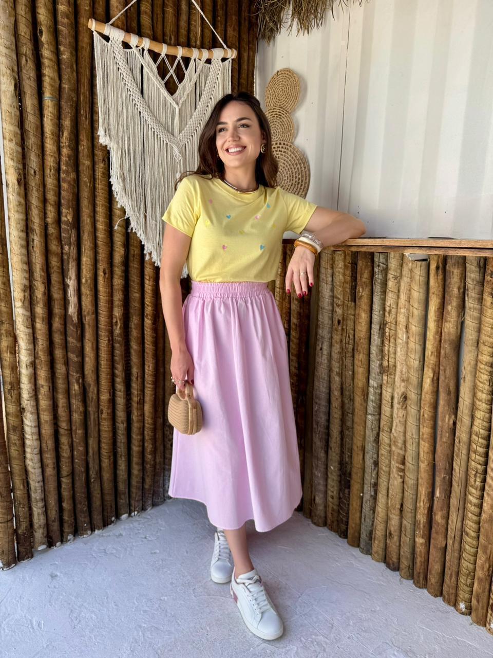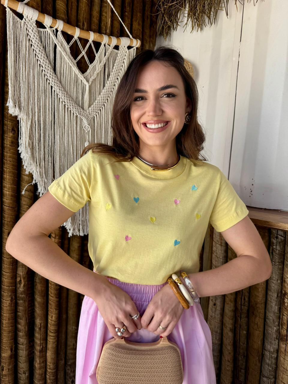 T-SHIRT HEARTS - ALGODÃO - AMARELA