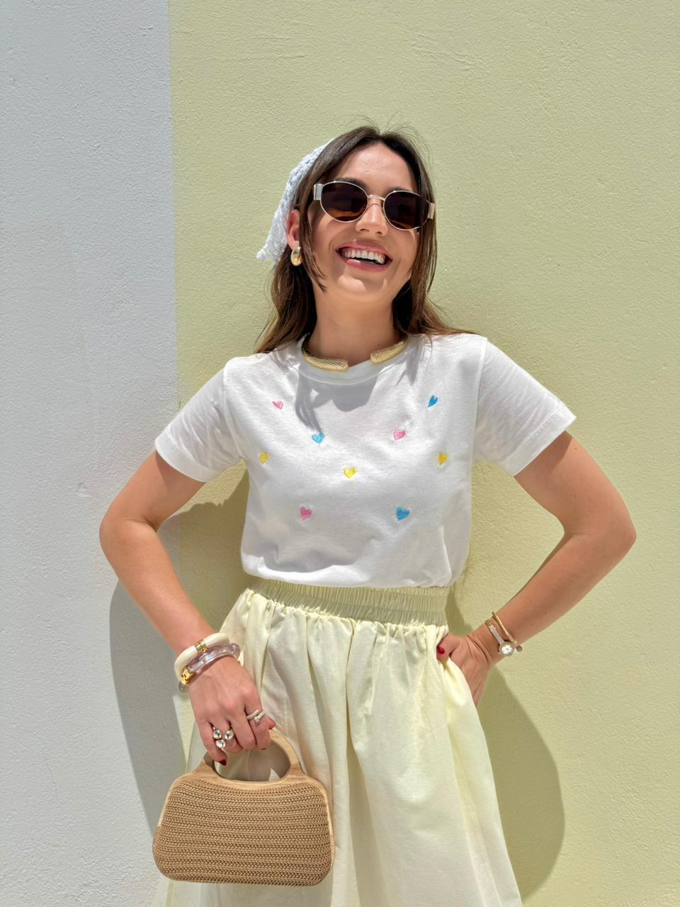 T-SHIRT HEARTS - ALGODÃO - BRANCA