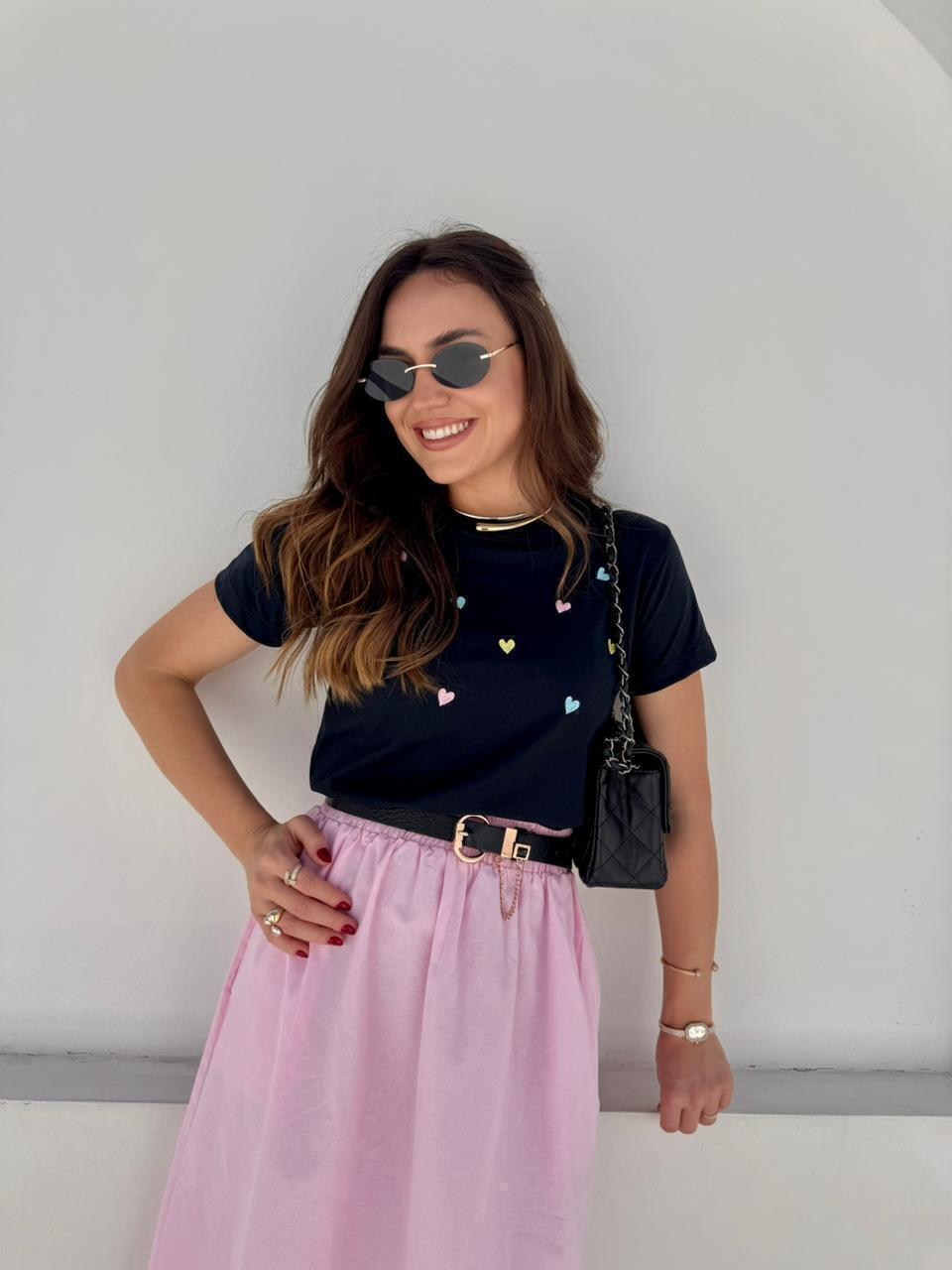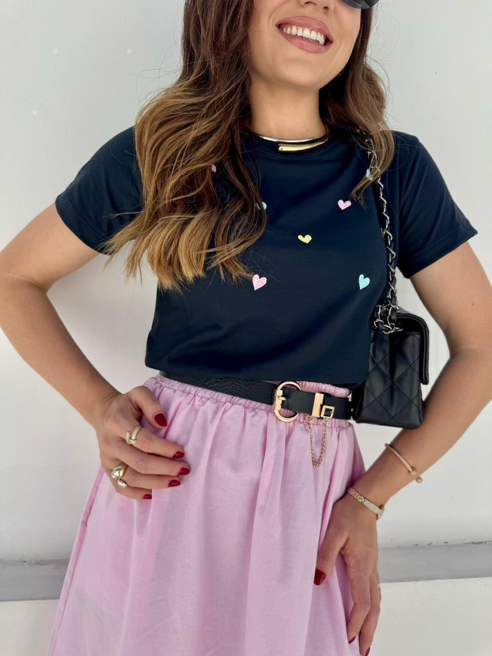Experimente o conforto e a elegância com a nossa t-shirt. Feita com tecido de alta qualidade, ela é perfeita para qualquer ocasião, desde um dia casual até uma saída especial. Seu design moderno e corte ajustado valorizam a silhueta feminina, proporcionando um visual sofisticado e descontraído.