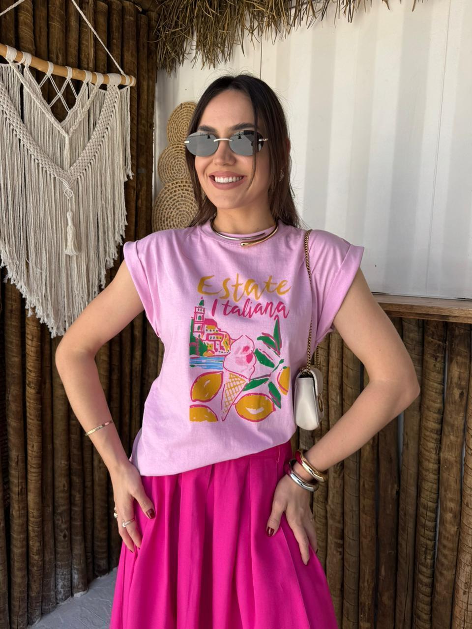 T-SHIRT REGATA - ALGODÃO - ESTATE ITALIANA - ROSA