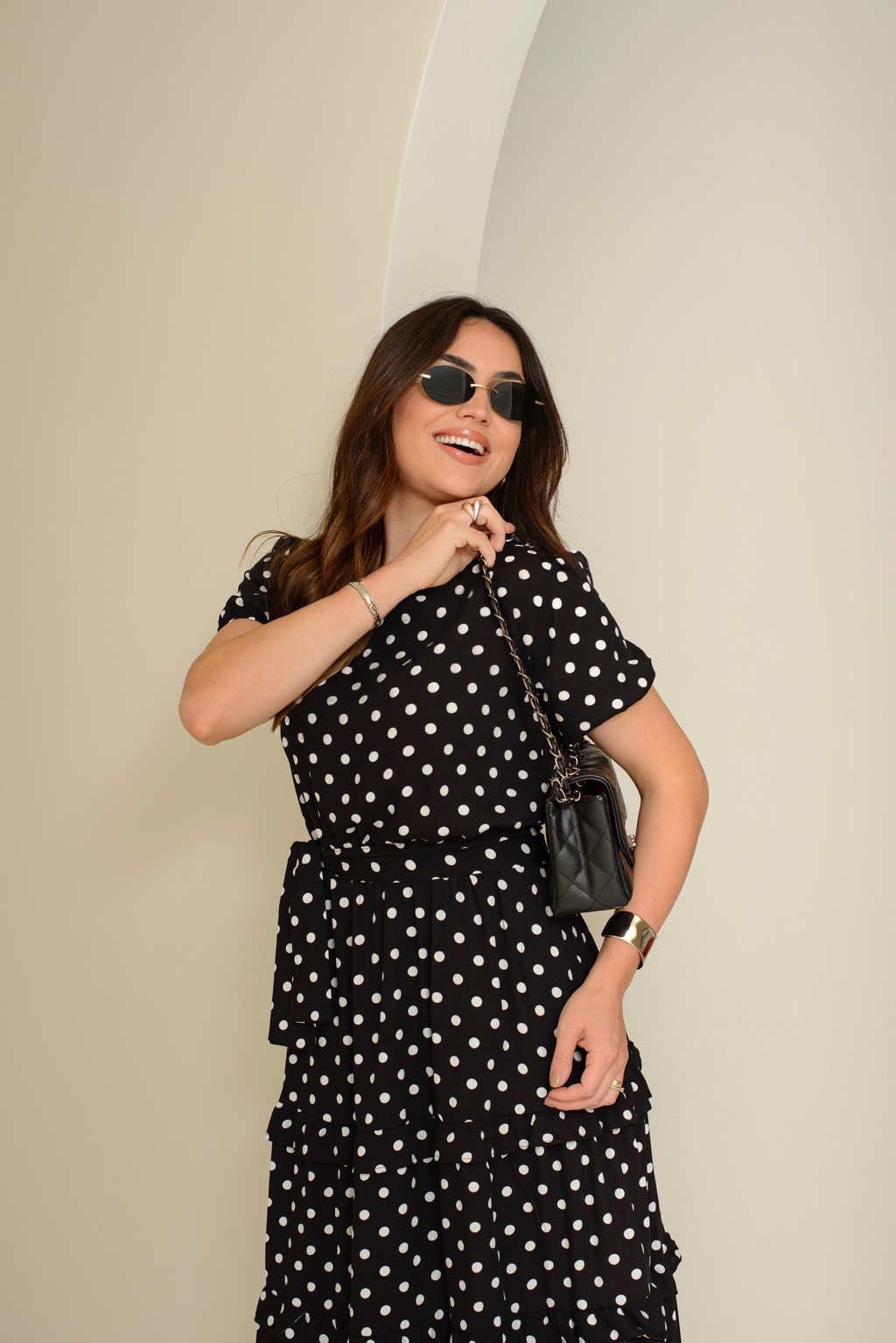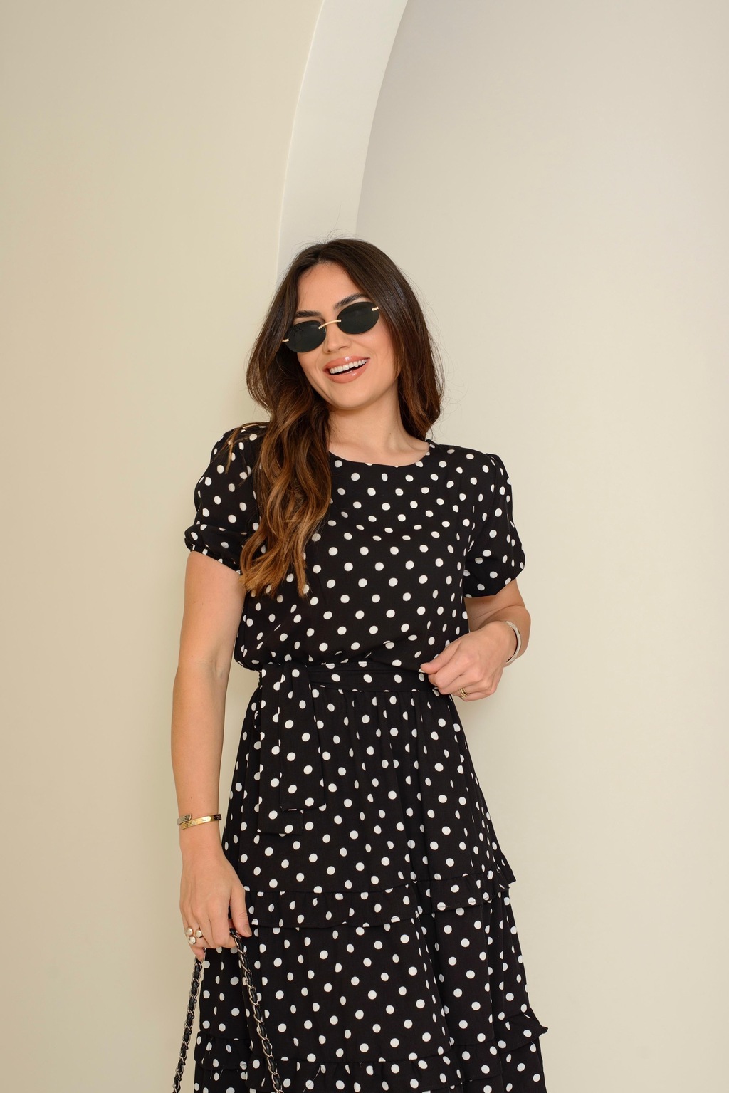 VESTIDO LUANA- VISCOLINHO - POÁ PRETO