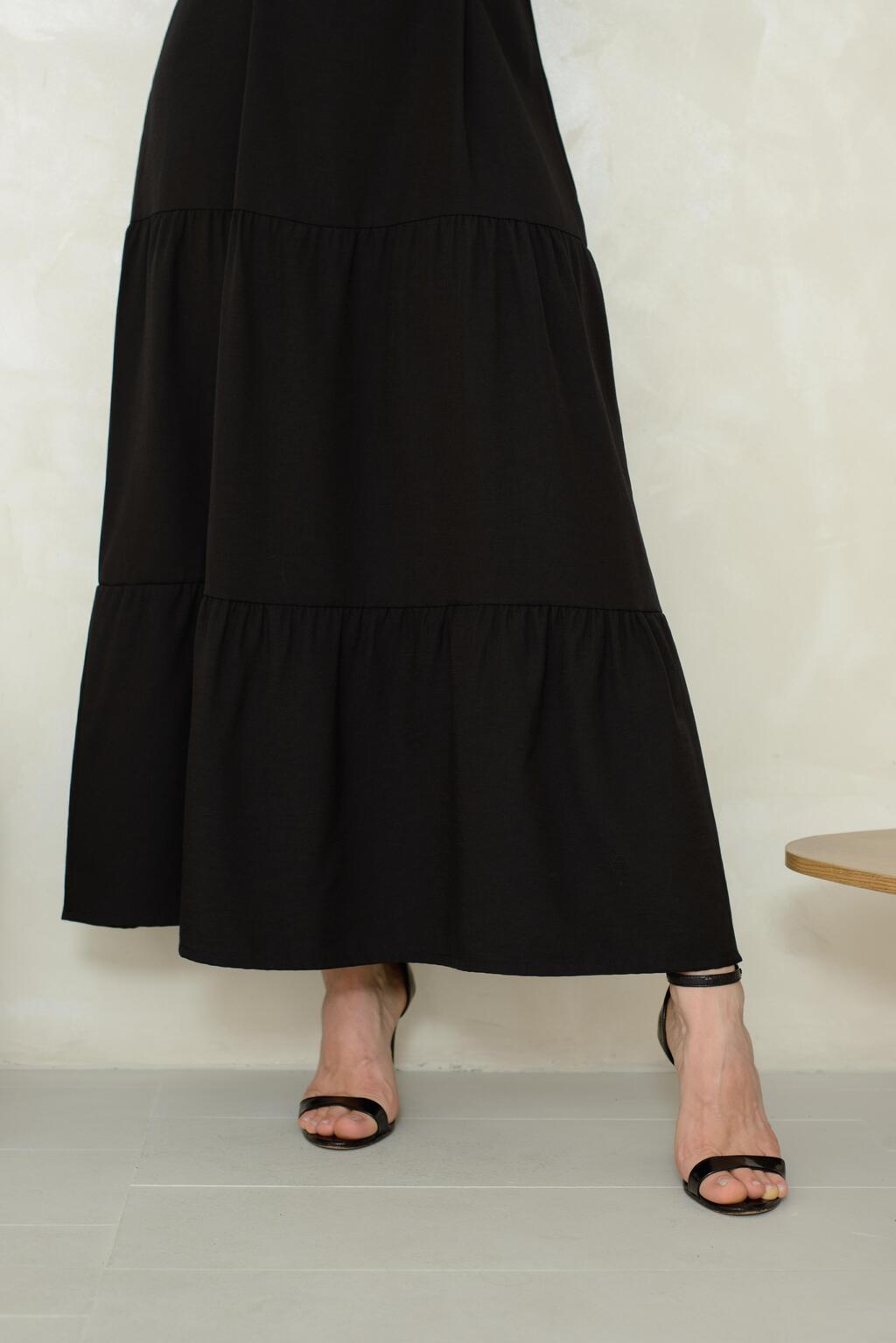 ° Modelagem levemente evasê com recortes horizontais em camadas, que criam volume delicado e movimento na saia.