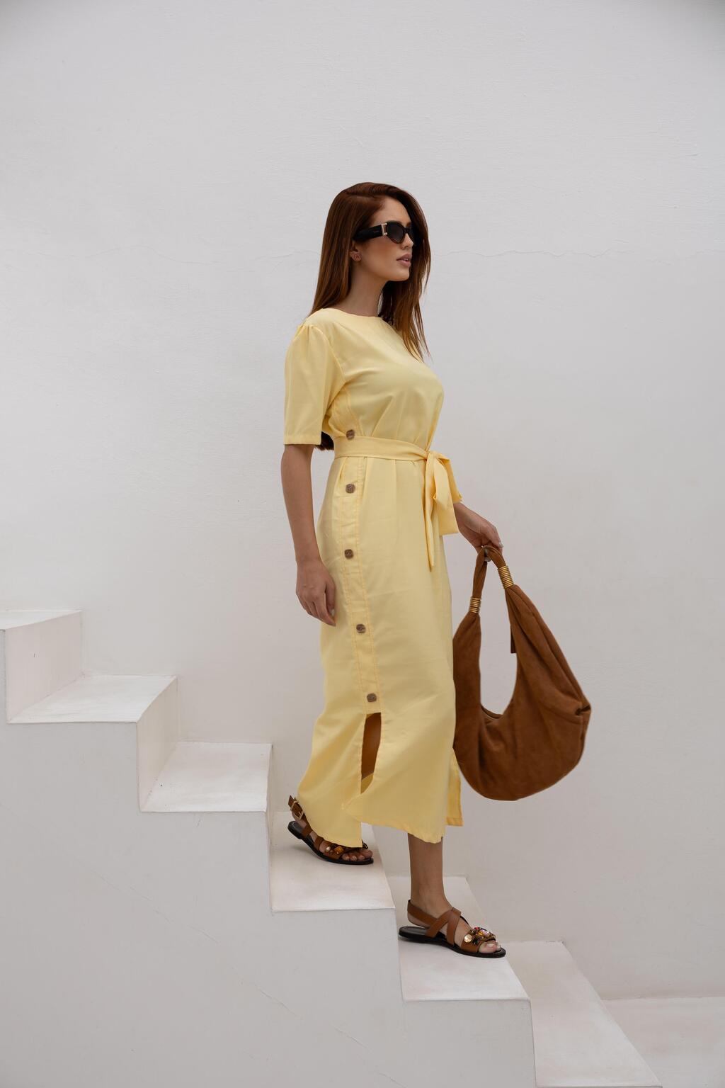 Esse modelo é um vestido midi de estilo elegante e casual ao mesmo tempo.